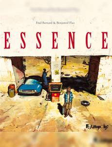 Achille, un jerrican à la main, déambule dans un dédale de couloirs dans un bâtiment immense, étrange... Enfin, il trouve une ouverture. Ébloui par le soleil, il se dirige vers une Ford Mustang blanche. À côté, une belle femme brune l'attend. Ils vont pouvoir repartir. La femme lui demande de reprendre le cours de ses souvenirs alors qu'ils roulent dans un paysage désertique. Se souvient-il de ce qu'il lui est arrivé avant de se retrouver ici, avec elle ? Achille a mal à la nuque et voit un étang gelé dans la brume, une Porsche 911 jaune en plein milieu, à moitié immergée. Un homme semble être à l'intérieur... Mais ça ne peut être lui, il n'a jamais eu de Porsche... Et puis qu'est-ce qu'il fait là, dans cette voiture, avec elle, alors qu'il ne l'a jamais vue et ne connaît même pas son nom ? Alors, elle lui révèle la vérité : il est au « paradis » (plutôt le purgatoire, ou la purge) des pilotes, et elle est son ange gardien. Pour en sortir, il va falloir comprendre comment il est mort pour trouver la paix... Essence, c'est la rencontre magique et déjantée de deux auteurs d'exception qui ont partagé leurs univers. C'est un récit hors norme où tout peut arriver, c'est aussi un livre au format particulier, plus carré, pour les images en cinémascope ! Essence, c'est aussi l'une des plus belle course poursuite de voitures de l'histoire de la bande dessinée !