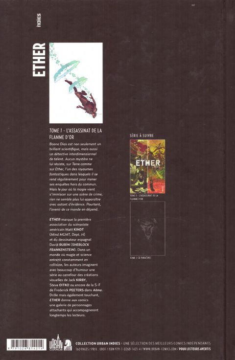 Boone Dias, un scientifique reconverti en détective interdimensionel résous les plus graves crimes de l'Ether, un univers magique où Singes géant, oiseaux criants et autres créatures bizarres se croisent. En véritable passionné, il questionne tout de manière analytique, délaissant sa vie sur terre. Matt Kindt et David Rubin signent le début (...) Voir le commentaire