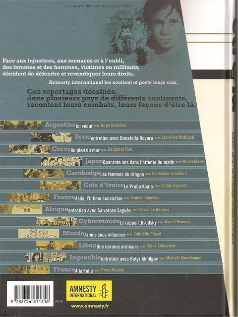 De la frontière turque, où l'état grec a construit un mur de 10 km pour empêcher les migrants désireux de vivre en Europe de passer, à Grigny en France dans un campement de Roms et Phnom Penh au Cambodge où femmes luttent pour défendre leurs maison, Christophe Dabitch est parti à la rencontre de ceux qui se battent pour leurs droits et qui transforment un statut de victime en celui d'acteur, souvent avec l'aide d'organisations militantes dont le rôle est d'amplifier leurs voix afin de changer des situations concrètes. L'idée d'une présence au monde, une façon d'agir et d'être là, avec les questions que cela soulève, traverse ces reportages graphiques en écho aux droits fondamentaux.