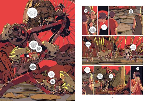Il y a d'abord eu la puanteur, qui a brutalement remplacé la brise parfumée soufflant habituellement sur la vallée des êtres fourmis, ces hommes de quelques millimètres de haut vivant dans les sous-bois. Puis, la maladie du Bacille s'est répandue comme une traînée de poudre, n'épargnant aucun village endeuillant chaque foyer. C'est au paroxysme de l'épidémie qu'ils sont apparus, immenses salvateurs divins : les êtres montagnes ont donné l'antidote au Prieur Armillaire et ont ainsi sauvé son peuple. Tout le monde connaît cette légende, y compris Myco et sa petite soeur, Paille, qui ont perdu leurs parents dans cette tragédie... Et l'austère Prieur, désormais chef du village des Champignons, s'assure que personne ne l'oublie et que tout un chacun honore dûment les êtres montagnes. Alors quand un étranger portant un masque doté d'un long bec d'oiseau arrive au village et annonce que la maladie est de retour, personne ne veut le croire. Mais Myco, qui voit des premiers stigmates apparaître sur la peau de sa soeur, décide, contre l'avis de tous, de gravir la montagne pour chercher la dernière dose antidote.