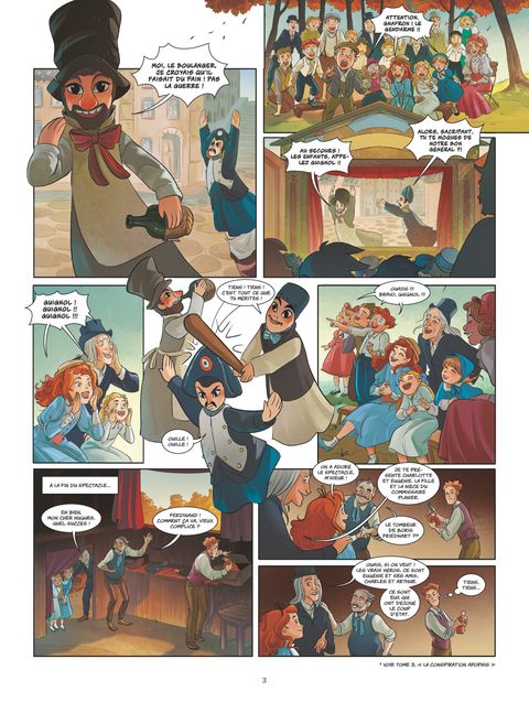 Au théâtre comme dans la vie, l’ennemi avance masqué.Octobre 1886. Dans les rues de la capitale, un criminel affublé d’un masque de Guignol terrorise Paris en agressant brutalement des notables. Depuis le coup d’État raté, l’insécurité règne. De nombreux membres des « Reptiliens », déçus par leur échec et toujours en liberté, veulent continuer la lutte. Ce mystérieux Guignol pourrait-il en faire partie ? Mais l’agresseur n’a laissé aucune trace, aucune piste tangible, et continue de semer la peur. La Confrérie de Vidocq mènerait bien l’enquête si elle ne connaissait des tiraillements internes. Charles a choisi d’aider son ami d’enfance, Raoul d’Andrésy, à commettre un cambriolage risqué. Le but est de pouvoir financer l’évasion d’un garçon, Gaston, emprisonné dans l’horrible prison de la Petite Roquette. Eugénie se retrouve donc seule avec Arthur pour résoudre l’énigme de celui que la presse surnomme déjà « Le Guignol Maléfique ». Mais elle va s’apercevoir que cet effrayant personnage semble la connaître ! Il s’est immiscé dans son entourage et menace le bon déroulement du plan que Charles est en train de concocter avec Raoul. Alors que la psychose gagne les rues, Eugénie va bientôt voir s’affronter les futurs Prince des Voleurs et Génie du Mal…Eugénie et les Mystères de Paris conte les péripéties d’une bande de gamins enjoués aux parcours accidentés, par le scénariste et réalisateur du film d’animation à succès Ballerina.
