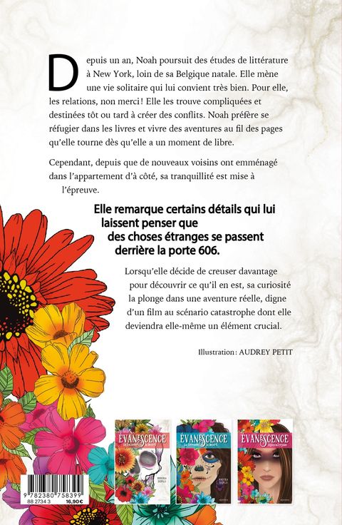 Depuis un an, Noah poursuit des études de littérature à New York, loin de sa Belgique natale. Elle mène une vie solitaire qui lui convient très bien. Pour elle, les relations, non merci ! Elle les trouve compliquées et destinées tôt ou tard à créer des conflits. Noah préfère se réfugier dans les livres et vivre des aventures au fil des pages qu'elle tourne dès qu'elle a un moment de libre. Cependant, depuis que de nouveaux voisins ont emménagé dans l'appartement d'à côté, sa tranquillité est mise à l'épreuve. Elle remarque certains détails qui lui laissent penser que des choses étranges se passent derrière la porte 606. Lorsqu'elle décide de creuser davantage pour découvrir ce qu'il en est, sa curiosité la plonge dans une aventure réelle, digne d'un film au scénario catastrophe dont elle deviendra elle-même un élément crucial.