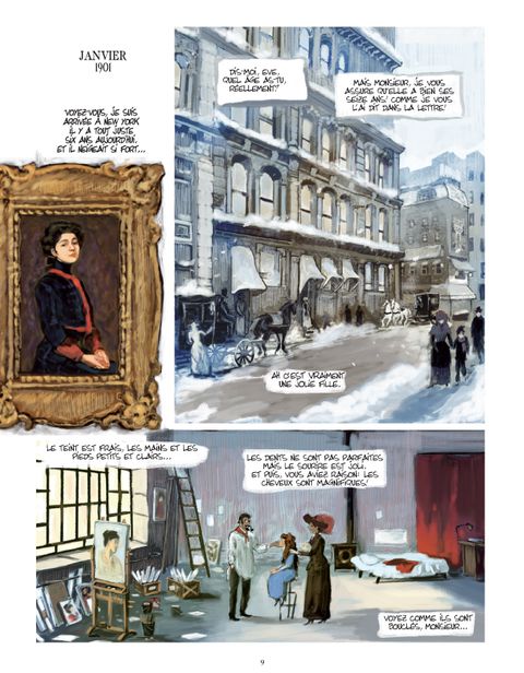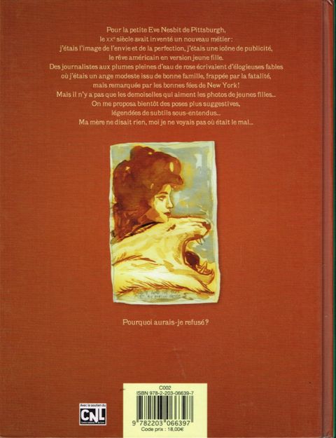 Evelyn « Eve » Nesbit (1884-1967) est la première pin-up du XXe siècle, la première muse d'une société de consommation qui fabrique l'image d'une vedette pour la brûler ensuite. Adolescente, Eve est magnifique. Chaperonnée par une mère abusive qui exploite outrageusement ses charmes naturels, elle arrive à 16 ans à New York, une mégapole alors en pleine explosion économique. Très vite, sa beauté rayonnante est captée par les peintres, les photographes et les publicitaires de la Belle Époque. Mais l'ascension de la « vraie Eve américaine » - « the true American Eve », comme on l'avait qualifiée - est aussi fulgurante que le sera sa chute, sordide. Dans ce roman graphique aux douces images aquarellées, Nathalie Ferlut a choisi de retracer les six années déterminantes de la vie d'Eve Nesbit, icône du début du XXe siècle. Une démonstration réussie de savoir-faire narratif et un bel exemple de « biopic » dessiné.