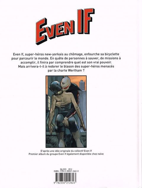 Pour qui se prend-il Even if ? Pour un super héros, tout simplement. Un Jésus-christ de la BD, un Martin Luther King des comics. Il se prend pour celui que l'on n'attendait. pas ! Sorti de son cadre, il se balade dans le monde entier. et finit par tomber de haut : Even if n'est pas celui qu'il croyait être ! Quels sont ses pouvoirs ? Comment se sortira-t-il de cette histoire à dormir debout ? C'est ce que racontent les dessinateurs associés à ce collectif, une aventure en images et en musique, tonifiante. Autour de Paul (Sébastien Convard), sont rassemblés de nombreux dessinateurs de talent : Jean Giraud, Tanino Liberatore, André Juillard, Pierre Druilhe, Albert, Felix Lantieri, Henry Jacot, Bernard et Olivier Besseron. En parallèle, le groupe EVEN IF sort son premier album chez naïve. Le groupe se présente comme un collectif rock imaginé par Daniel Roux. Ce bassiste, décédé fin 2009, avait joué en 1976 aux côtés de Richard Kolinka et Jean-Louis Aubert avant la création de Téléphone. Il les avaient retrouvés onze ans plus tard dans le groupe Aubert'n'Ko. En devenant réalité, Even If lui rend hommage tout en ponctuant quatre décennies d'amitié. C'est aussi une histoire de famille. Raphaël Roux, le frère de Daniel, y incarne les liens du sang. Mais le rock de ce collectif, qui oscille entre sombres mélodies et sons joyeux, prolonge les éclats d'une famille musicale née dans les années 1970.