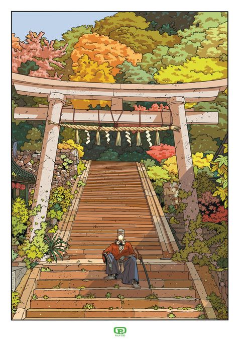 Aki l'automne - print A3 signé by sylvain repos ( yojimbot ) - exclusif pulp's bd