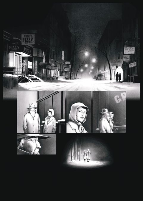 Reproduction de la planche 54 du tome 1 de la serie sideshow au format A3 au recto planche encré au verso planche crayonée signée par emmanuel despujol limité a 80 exemplaires impression sur papier turner 300g exclusivité pulp's bd