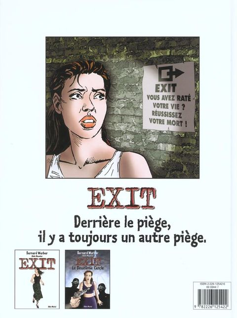 Qui se cache derrière la mystérieuse et tentaculaire organisation d'Exit ? Après avoir échappé, grâce à l'intervention d'un allié inopiné, à l'infernale chasse à courre dont elle était le gibier "(Exit 2)", Amandine va mettre à jour un à un les rouages de cette machine diabolique, dont les réseaux se confondent avec ceux de l'État même. Ainsi retrouvons-nous, dans le troisième volet de ce palpitant thriller, une Amandine plus battante que jamais, un commissaire aussi perspicace qu'obstiné, un ministre animé de louches ambitions...Avec Kafka, le chat, qui tirera notre héroïne de plus d'un mauvais pas, et Gabriel Nemrod, le jeune inventeur fou qui va devenir son compagnon dans l'aventure comme dans la vie, voilà constitué un vrai trio de choc qui va propulser la série vers de nouveaux sommets. Car comme on pouvait le supposer, la saga est loin d'être terminée. Pour notre plus grand plaisir, Bernard Werber nous tiendra en haleine jusqu'au dernier souffle.\0