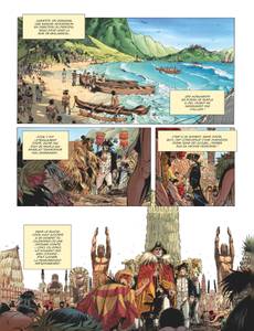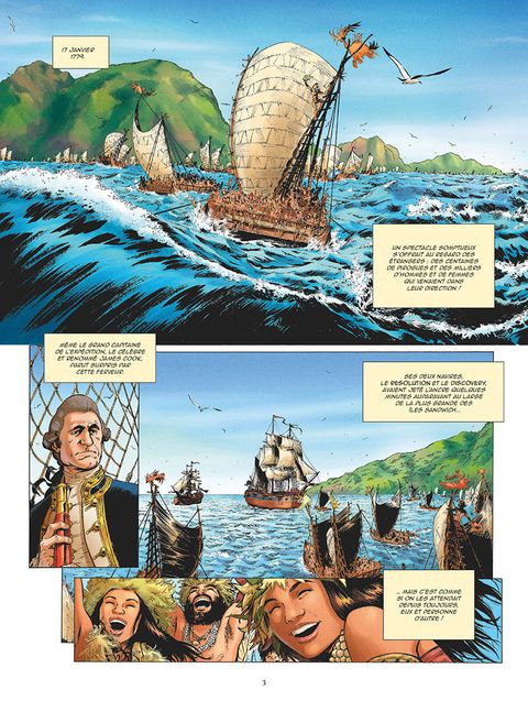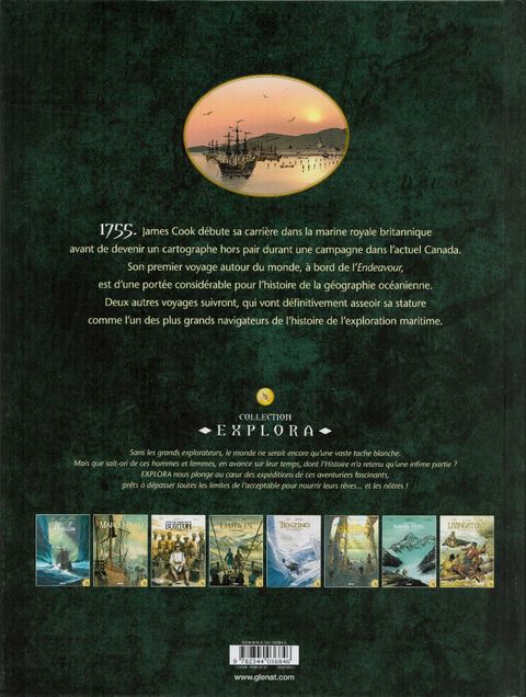 Doté d'un grand sens marin et très doué pour la cartographie, James Cook est sans conteste l’un des plus grands navigateurs de l’histoire de l’exploration maritime. Ce capitaine anglais de la Royal Navy a consacré l'essentiel de sa carrière à naviguer autour du globe, et notamment dans l'océan Pacifique où ses voyages ont donné lieu à de nombreuses découvertes et cartes qui ont changé notre vision du monde. James Cook débute sa carrière dans la marine royale britannique en 1755, avant de devenir un cartographe hors-pair durant une campagne dans l'actuel Canada. Son premier voyage autour du monde, à bord de l'Endeavour, est d'une portée considérable pour l'histoire de la géographie océanienne et va asseoir sa stature. Deux autres voyages suivront, au cours desquels, entre autres, il effectue le tour complet de la Nouvelle-Zélande, explore la Nouvelle-Calédonie, s’approche du continent Antarctique, étudie l'île de Pâques, apporte la preuve que le grand continent austral supposé n'existe pas et découvre Hawaï ("Iles Sandwich" à l'époque) où il trouvera la mort en 1779 dans des circonstances particulièrement tragiques.Après avoir écrit les formidables romans graphiques Terra Australis et Terra Doloris, consacrés à la naissance de l'Australie moderne, LF Bollée retourne dans l’hémisphère sud et les terres australes pour rendre un hommage passionné à l'un des plus grands explorateurs de tous les temps à travers deux nouveaux albums de la collection "Explora" dessinés avec brio par Federico Nardo qui peut à nouveau exprimer pleinement son goût pour l’aventure et les grands espaces.
