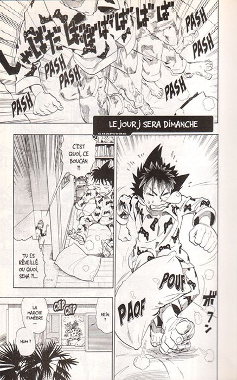Difficile de se faire respecter quand on est depuis toujours le souffre-douleur de ses camarades ! Sena le sait bien, lui qui est constamment chargé de faire le « coursier » pour tous ceux qui le briment. Pour cette rentrée scolaire, Sena veut tourner la page et se décide à rentrer dans un club. Malheureusement pour lui, il croise le chemin de Hiruma, le responsable du club de football américain, un être psychotique prêt à toutes les combines pour faire rentrer des joueurs dans son club. Lorsqu'il découvre que Sena est doté d'un jeu de jambe hors du commun, il décide de jeter son dévolu sur le pauvre garçon. Et ils n'ont pas intérêt à tarder de recruter les onze autres joueurs manquants pour former une équipe, car le début du championnat inter lycéen débute... dans 24 heures ! Eye Shield 21 est la nouvelle bombe sportive du Shônen Jump, un mélange détonnant d'humour et d'action qui fait actuellement fureur au Japon ! Vous ne connaissez rien au foot américain ? Rassurez-vous, le héros non plus ! Preuve est faite, encore une fois, que les japonais sont capables de rendre passionnant n'importe quel sujet. Un futur hit du shônen en France !
