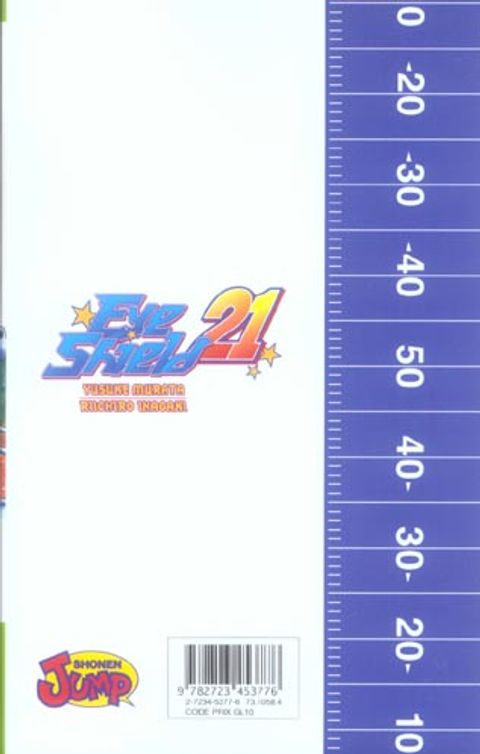 Difficile de se faire respecter quand on est depuis toujours le souffre-douleur de ses camarades ! Sena le sait bien, lui qui est constamment chargé de faire le « coursier » pour tous ceux qui le briment. Pour cette rentrée scolaire, Sena veut tourner la page et se décide à rentrer dans un club. Malheureusement pour lui, il croise le chemin de Hiruma, le responsable du club de football américain, un être psychotique prêt à toutes les combines pour faire rentrer des joueurs dans son club. Lorsqu'il découvre que Sena est doté d'un jeu de jambe hors du commun, il décide de jeter son dévolu sur le pauvre garçon. Et ils n'ont pas intérêt à tarder de recruter les onze autres joueurs manquants pour former une équipe, car le début du championnat inter lycéen débute... dans 24 heures ! ""Eye Shield 21 ""est la nouvelle bombe sportive du Shônen Jump, un mélange détonnant d'humour et d'action qui fait actuellement fureur au Japon ! Vous ne connaissez rien au foot américain ? Rassurez-vous, le héros non plus ! Preuve est faite, encore une fois, que les japonais sont capables de rendre passionnant n'importe quel sujet. Un futur hit du shônen en France !\\0