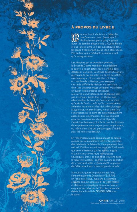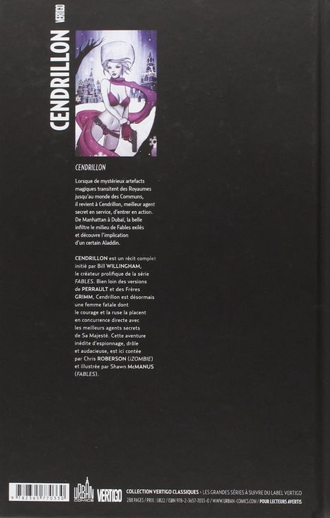 L’univers foisonnant de Fables s’offre une nouvelle série dérivée et place son héroïne Cendrillon au coeur d’aventures dignes des meilleurs James Bond. Lorsque de mystérieux artefacts magiques transitent des Royaumes jusqu’au monde des Communs, il revient à Cendrillon, meilleur agent secret en service, d’entrer en action. De Manhattan à Dubaï, la belle infiltre le milieu de Fables exilés et découvre l’implication d’un certain Aladdin. (Contient CINDERELLA : FROM FABLETOWN WITH LOVE + CINDERELLA : FABLES ARE FOREVER) Couverture cartonnée.