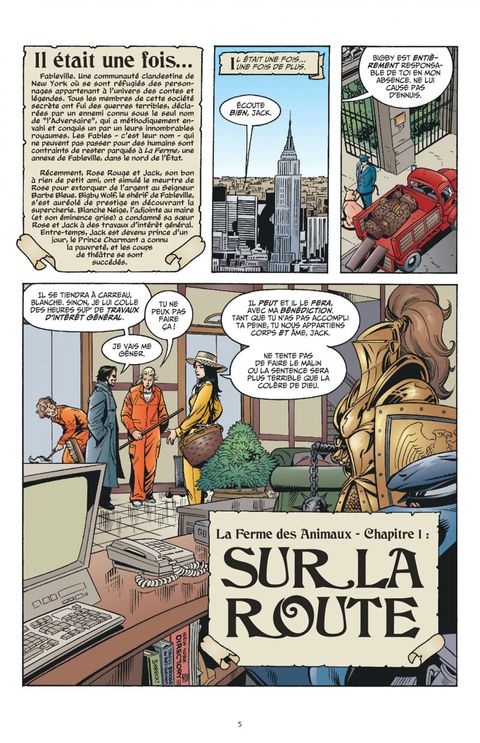 Tous les Fables n'ont pas la chance d'avoir l'apparence humaine d'un Prince Charmant. Ogres, dragons, tigres et panthères du Bengal, trinités d'ours et de petits cochons,. Tous ont été placés dans une ferme, quelque part au fond du New Jersey. Mais s'ils sont doués de parole, ces Fables de « seconde zone » sont également dotés d'un sacré caractère. Aussi, depuis quelques temps, la révolte couve. Une situation qui pourrait bien profiter à la malicieuse Boucle d'Or.