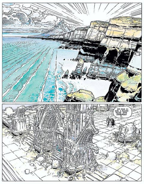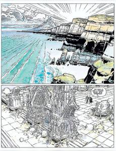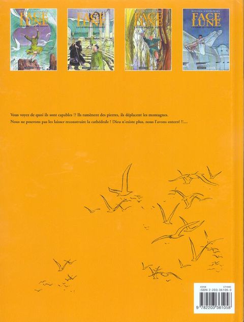 L'île de Damanuestra, dirigée par le terrible dictateur Oscar Lazo, est la proie de vagues gigantesques qui déferlent de façon imprévisible sur les côtes et emportent tous ceux qui ont le malheur de s'y trouver. Seul Face de Lune, le muet qui parle avec ses mains, surfe sur les vagues et semble les apprivoiser... Une fresque impressionnante, signée par François Boucq et Alexandro Jodorowsky. Aidé par son amie Isha, il décide de rebâtir en trois jours la cathédrale de pierre effondrée et de redonner la lumière aux esclaves du Kondukator. Le superbe bâtiment prend forme, ses vitraux rayonnent, le phare s'allume... il ne manque plus que la pierre de faîte, celle-là même que dieu seul peut poser. Suspense qui clôt ce second volet d'un triptyque haletant qui mêle mysticisme, psychanalyse, philosophie... et humour. "La pierre de faîte" et "La femme qui vient du ciel" content l'histoire initialement relatée dans la première version de "La Pierre de faîte". "La pierre de faîte" et "La femme qui vient du ciel" content l'histoire initialement relatée dans la première version de "La Pierre de faîte".