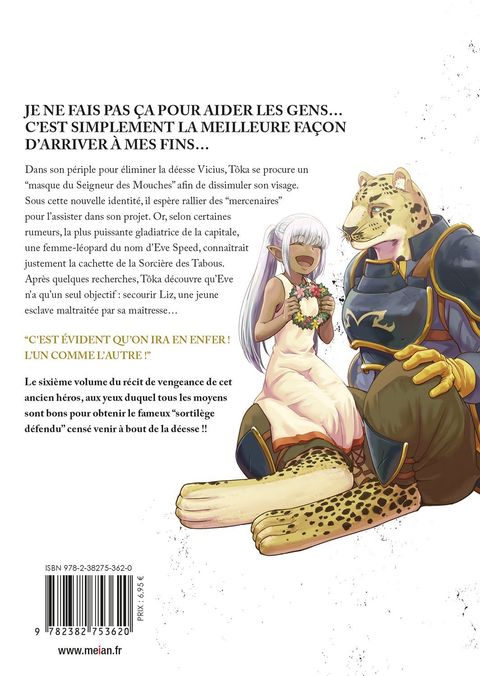 Je ne fais pas ça pour aider les gens... C'est simplement la meilleure façon d'arriver à mes fins...Dans son périple pour éliminer la déesse Vicius, Tôka se procure un "masque du Seigneur des Mouches" afin de dissimuler son visage. Sous cette nouvelle identité, il espère rallier des "mercenaires" pour l'assister dans son projet. Or, selon certaines rumeurs, la plus puissante gladiatrice de la capitale, une femme-léopard du nom d'Eve Speed, connaîtrait justement la cachette de la Sorcière des Tabous. Après quelques recherches, Tôka découvre qu'Eve n'a qu'un seul objectif : secourir Liz, une jeune esclave maltraitée par sa maîtresse..."C'est évident qu'on ira en enfer ! L'un comme l'autre !"