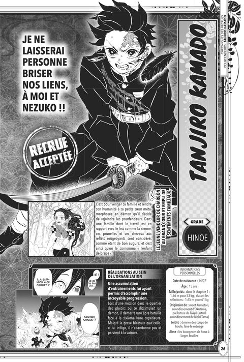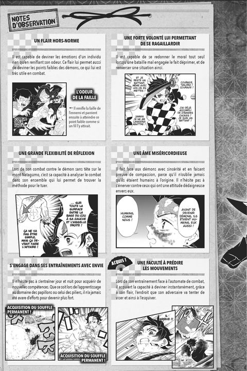En plus du story-board des trois premiers chapitres de <em>Kisatsu no Nagare</em>, le projet à l’origine de Demon Slayer, vous découvrirez dans ce fan book les portraits détaillés des protagonistes du manga (âge, date et lieu de naissance, etc.), des illustrations inédites de Koyoharu Gotouge, une foultitude d’anecdotes présentées sous la forme de « petits potins de l’ère Taishô », des croquis inédits conçus pour l’anime, ainsi qu’une pléthore d’informations sur les pourfendeurs. Koyoharu Gotouge avait vraiment l’intention de combler ses lecteurs qu’elle gratifie d’un chapitre inédit de neuf pages. Cerise sur le gâteau, les illustrations de la jaquette et de la couverture sont des dessins inédits ! Bref, ce fan book est le guide ultime pour tous les fans de la série ! Plus qu’un manga, un phénomène !<em> Demon Slayer</em> est le titre de tous les records, chaque fois que le manga de Koyoharu Gotouge est cité, un nouvel exploit est atteint ! Plus de 3 millions d’exemplaires ont été vendus en France depuis la parution du tome 1. En octobre 2021, il était en deuxième position des ventes de manga en France (chiffres GFK). Le jeune Tanjiro fait de l’ombre aux vétérans !!! Son avenir s’annonce radieux avec de nombreuses nouveautés en 2022 !