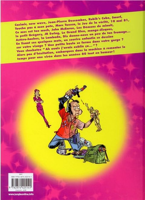 Casimir, new wave, jean-pierre descombes, rubik's cube, smurf, touche pas à mon pote, marc toesca, le jeu de la vérité, 10 mai 81, ce mec est too much, john mcenr?, les démons de minuit, le petit grégory, jr ewing, le grand bleu, mange-disques, astéro-haches, la lambada, dis donne-nous un peu de ton fromage... En lisant ces quelques mots, un sourire enfantin se dessine sur votre visage ? une petite boule se forme dans votre gorge ? vous chuchotez ""ah ouais j'avais oublié ça... ""oe alors pas d'hésitation, embarquez dans la machine à remonter le temps pour une virée dans les années 80 tout en humour !