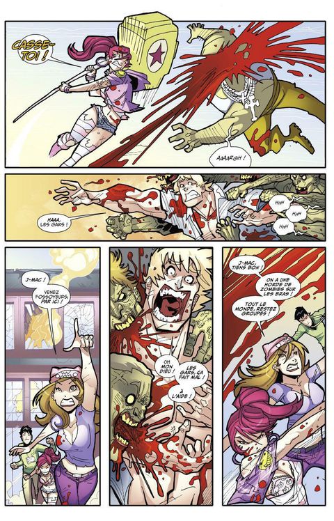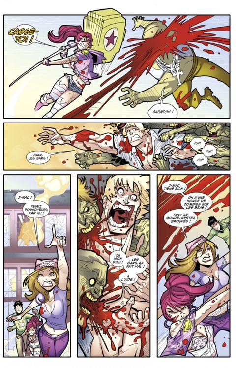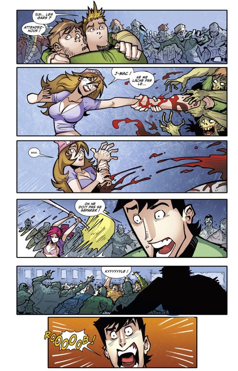 Quitter le Comic Con en proie aux zombies, c'était la partie amusante de l'histoire. Il faut maintenant fuir San Diego, une ville abandonnée entièrement aux zombies ! Notre groupe de fans dépassés par les évènements, les Fossoyeurs, n'a nulle part où se cacher, et la lutte pour la survie commence alors que la menace zombie se propage progressivement sur toute la côte ouest du territoire. Savant mélange entre Walking Dead de Robert Kirkman, Runaways de Brian K. Vaughan et Tony Chu pour sa patte graphique décalée et cartoonesque, Fanboys vs Zombies est un comics d'aventure plein d'humour, d'action, de zombies et de références à la culture geek, dont chaque case fourmille de clins d'oeil.