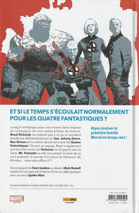 Sur fond de guerre froide et de course aux étoiles entre différentes nations, quatre aventuriers de l'impossible se lancent dans un voyage stellaire qui les changera à tout jamais. Reed Richards, Ben Grimm, Susan et Johnny Storm : découvrez les aventures des Quatre Fantastiques comme vous ne les avez jamais vues, déployées sur six décennies. À la façon de l'album LES ÉTERNELS T01 - ÉDITION PRESTIGE paru en novembre dernier, retrouvez FANTASTIC FOUR : L'HISTOIRE D'UNE VIE dans une édition grand format de 200 pages laissant toute la place aux magnifiques dessins de Sean Izaakse, et agrémentée d'innombrables bonus. Un collector ! Contient les épisodes US de Fantastic Four: Life Story (2021) #1-6.