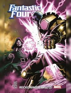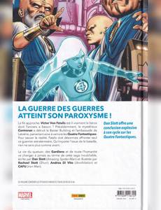 La Guerre du Jugement se poursuit ! Qui est le vilain qui a détruit le Baxter Building et l'Ambassade de Latvérie, tout en battant les Quatre Fantastiques, et cela sans que personne n'arrive à mettre la main sur lui ? Le Docteur Fatalis pourra-t-il le vaincre seul ? Le Silver Surfer, le Gardien et Miss Hulk sont également impliqués dans cet évènement cataclysmique qui aura d'immenses conséquences pour les Fantastiques... et l'univers Marvel tout entier ! Dan Slott (Superior Spider-Man) achève son long séjour sur la série Fantastic Four de superbe façon, avec une saga à laquelle il songe depuis plus de vingt ans ! Les Quatre Fantastiques reviendront très prochainement sous la houlette d'une nouvelle équipe artistique, mais cet album boucle toutes les trames tissées par le scénariste.