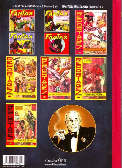 Fantax : Numéros 6 à 9 - 1959 / Reportages Sensationnels : Numéros 1 à 5 - 1951Réédition en Intégrale des numéros 6 à 9 de Fantax (Série 3), parus en 1959, ainsi que les numéros 1 à 5 de Reportages Sensationnels, parus en 1959.
