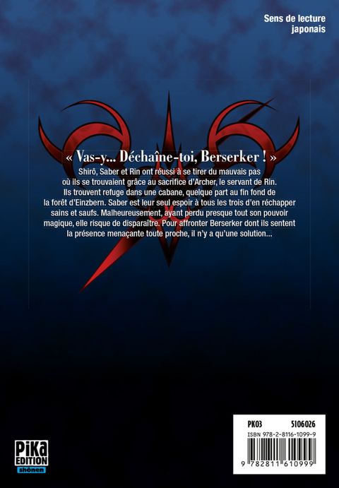Shirô, Saber et Rin ont réussi à se tirer du mauvais pas où ils se trouvaient grâce au sacrifice d’Archer, le servant de Rin. Ils trouvent alors refuge dans une cabane, quelque part au fin fond de la forêt d’Einzbern. Saber est leur seul espoir à tous les trois d’en réchapper sains et saufs. Malheureusement, ayant perdu presque tout son pouvoir magique, elle risque de disparaître. Pour affronter Berserker dont ils sentent la présence menaçante toute proche, il n’y a qu’une solution...