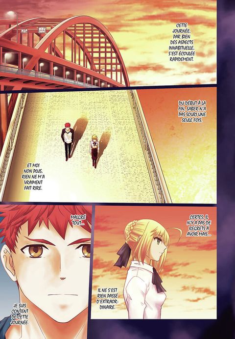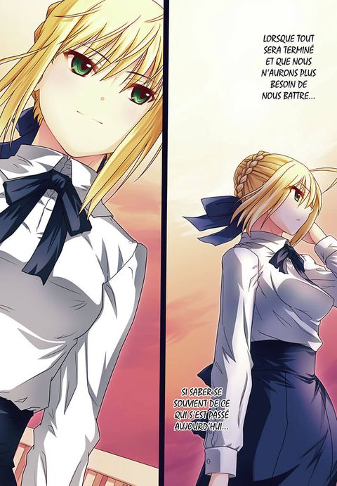 Shirô réalise enfin qu'il a toujours aimé Saber. Il a réussi à la convaincre de sortir avec lui et il essaie désespérément de la divertir. Il voudrait lui faire oublier les combats, alors qu'ils sont sa seule raison d'être en ce monde. Entre eux, le courant ne passe pas. Soudain, Archer surgit devant eux, prétendant que Saber lui appartient. La jeune femme est consciente de son infériorité par rapport à celui qui l'a vaincue lors de la dernière guerre. Mais Shirô, est plus déterminé que jamais à refouler cet ennemi insolite !
