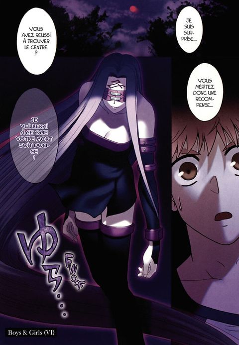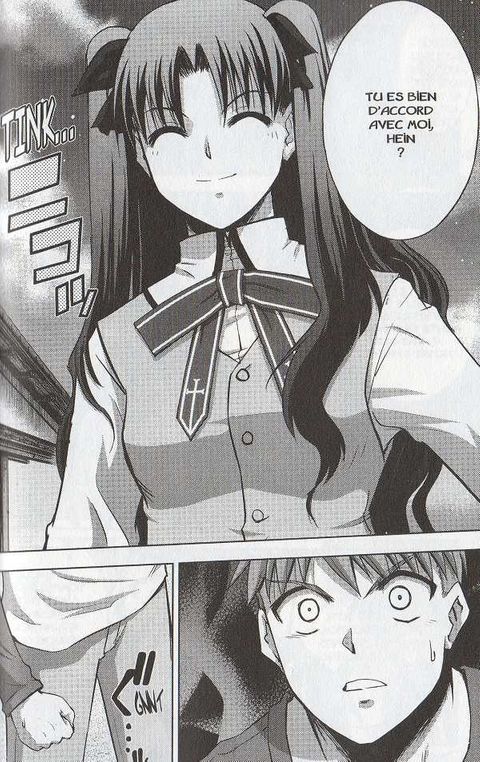 Shirô, quoique magicien débutant, arrive à repérer le point de base de la zone que Rider a enchantée. Face au danger que représente cette zone, et surtout, devinant les capacités de Shirô, Rin Tôsaka décide de coopérer avec ce dernier. C est sous ce prétexte qu'elle s installe chez lui. Cette coopération ne va pourtant pas sans heurt car Archer, le servant de Rin, reste méfiant à l égard de Shirô.