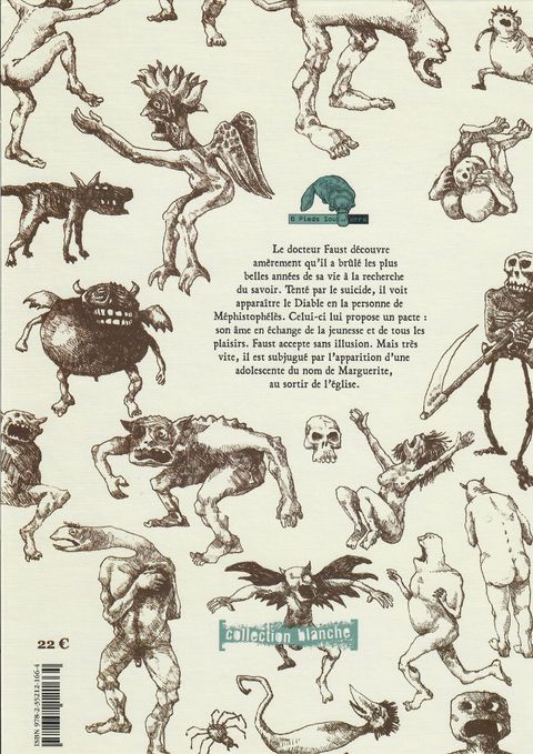 Faust, en qui l'homme contemporain se reconnaît volontiers, est sans doute la figure mythique la plus souvent reprise dans la littérature moderne. Il est le héros d'un grand nombre d'ouvrages, mais ce sera Goethe qui apportera au mythe sa lecture la plus achevée. Première adaptation en bande dessinée de la célèbre pièce de Goethe (publiée en 1790), Ambre et David Vandermeulen transposent l'un des plus importants textes de la littérature occidentale dans une version en images inédite et totalement époustouflante. Un cahier de huit pages narre le mythe faustien dans la littérature occidentale.