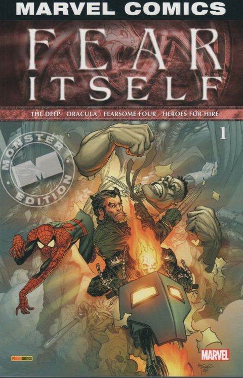 Les super-héros Marvel doivent à nouveau s'allier pour affronter une menace commune, cette année le crossover s'appelle Fear Itself. Le dieu de la peur est de retour, et il sème la terreur dans l'univers Marvel. Deux albums Monster seront consacrés à cet événement qui concerne tous les héros. Vous y découvrirez l'intégralité de la saga Youth in Revolt, qui s'intéresse aux jeunes héros de la série Avengers Academy et vous retrouverez la Veuve Noire dans une aventure en solo et à Paris. De son côté Namor gèrera les répercussions de Fear Itself sur son royaume aquatique dans The Deep. Un album à ne pas manquer pour tout savoir sur le nouveau crossover Marvel.