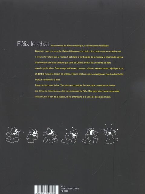 Félix le chat est une sorte de héros romantique, à la démarche inoubliable. Sans toit, mais non sans foi. Riche d'illusions et de désirs. Aux prises avec un monde cruel, il incarne la victoire par la malice. Il est dans la mythologie de la nursery le plus tendre voyou. Sa silhouette est aussi célèbre que celle de Charlot dont il est une sorte de frère dans la gente féline. Personnage malheureux, toujours affamé, toujours errant, rejeté par tous, et dont la rue est le terrain de chasse, Félix le chat n'a, pour compagnons, que les déshérités, et pour confidente, la lune. Faute de bien vivre il rêve. Tout alors est possible. Et c'est cette ouverture sur le rêve qui donne sa dimension au récit des aventures de Félix. Des gags sans cesse renouvelés illustrent, sur le ton de la facétie, la vie américaine à la veille de son grand krach.
