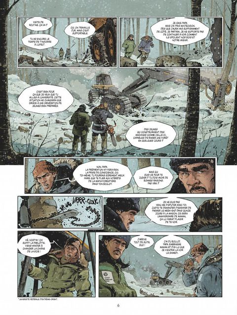 Quand la nature se déchaîne, personne n'est à l'abri. Sur le territoire du kraï du Primorié, en Extrême-Orient russe, près des frontières de la Chine et de la Corée du Nord, un tigre de Sibérie blessé par un braconnier se consacre à la chasse à l'homme. Non par faim mais plutôt par vengeance, il peint du sang de ses victimes la taïga sibérienne. Ni les brigades forestières contrôlées par la mafia sino-russe, ni les agents du Centre du Tigre de l'Amur, ni les groupes environnementaux ne sont en sécurité lorsque l'Amba, l'esprit des forêts, part à la chasse. Inspiré de faits réels, Féroce fascine par ses silences et ses paysages hivernaux désolés. Un récit puissant, peuplé de personnages forts et plus vrai que nature où le massacre et l'horreur peuvent être enclenchés à tout instant.