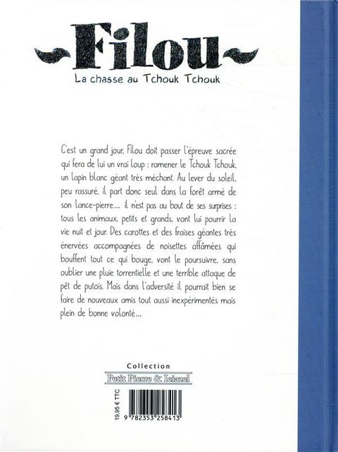C'est un grand jour, Filou doit passer l'épreuve sacrée qui fera de lui un vrai loup : ramener le Tchouk Tchouk, un lapin blanc géant très méchant. Au lever du soleil, peu rassuré, il part donc seul dans la forêt armé de son lance-pierre... Il n'est pas au bout de ses surprises : tous les animaux, petits et grands, vont lui pourrir la vie nuit et jour, des carottes et des fraises géantes très énervées accompagnées de noisettes affâmées qui bouffent tout ce qui bouge, vont le poursuivre, sans oublier une pluie torrentielle et une terrible attaque de pet de putois. Mais dans l'adversité il pourrait bien se faire de nouveaux amis tout aussi inexpérimentés et peut-être même devenir végétarien ?