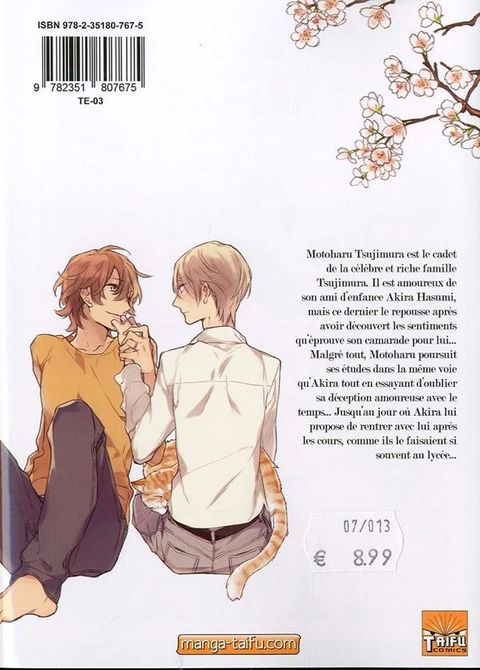 Le nouveau titre de Rihito Takarai ! Le Spin-Off de Seule la fleur sait!Motoharu, le fils du propriétaire de la clinique Tsujimura, a toujours eu des sentiments pour son ami d'enfance, Akira Hazumi. Cependant, après avoir enfin décidé de les lui déclarer, celui- ci se fait rejeter. Depuis cette confession, et malgré le fait qu'ils soient désormais dans le même département de la même université, les deux amis ont pris leurs distances. Un jour, Akira embrasse soudainement son ami, lui redonnant ainsi de l'espoir. Le lendemain, il lui dit de "l'oublier", au grand désespoir de Motoharu...