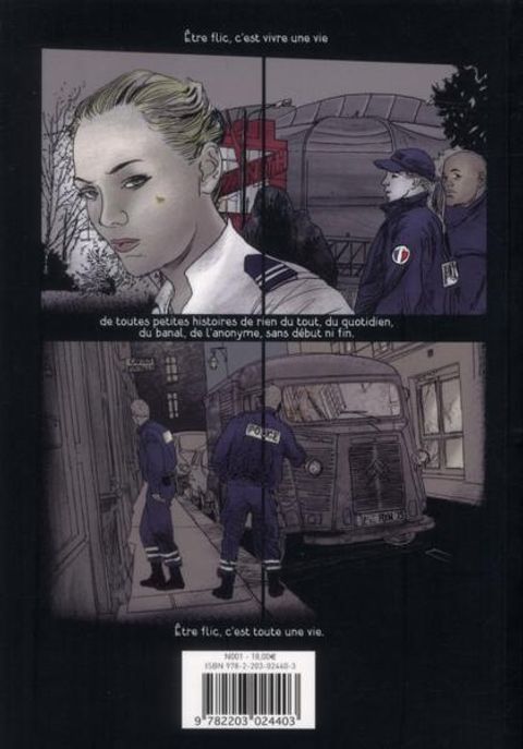 Mis en images par Séra, Flic est une adaptation en bande dessinée du livre éponyme de Bénédicte Desforges, publié en 2007 et immédiatement devenu un succès de librairie. Dans cette série de récits courts directement inspirés de son expérience et de son parcours de policier, Bénédicte Desforges brosse un saisissant portrait de ce métier complexe, en prise directe avec toutes les expressions, souvent contradictoires, de la condition humaine. Du drame au rire, du surgissement de l'extraordinaire à la banalité du quotidien, un témoignage au ras du réel, plein d'empathie, à la fois abrupt et d'une sensibilité vibrante.
