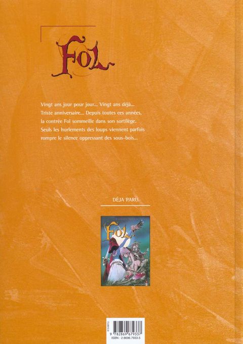 « Vingt ans jour pour jour... Vingt ans déjà... Triste anniversaire... Depuis toutes ces années, la contrée Fol sommeille dans son sortilège. Seuls les hurlements des loups viennent parfois rompre le silence oppressant des sous-bois... » Issu d'un enchantement, le peuple Fol existait tant que la plume magique qui les a créés restait cachée. Or, un jour, un gamin a déterré par inadvertance cette plume vitale. Immédiatement le peuple Fol à commencé à disparaître en retournant à son état originel : la mousse et les champignons...Puisant dans l'univers de Tolkien, "Fol" est une série qui nous entraîne dans un monde fait de magie et de danger. "Patrick Prugne", qui signe scénario et dessin, réussit parfaitement à planter ce décor féerique, à nous faire aimer ces petits personnages attachants dans un récit riche en rebondissements alliant l'humour à l'aventure.