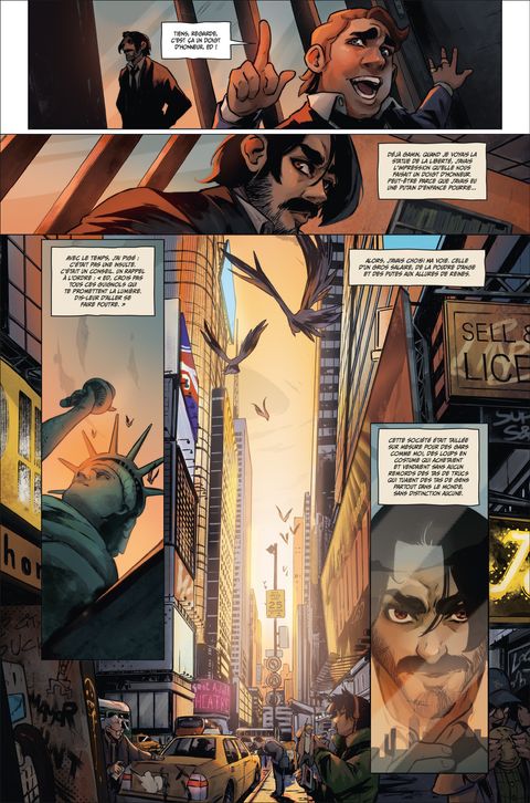 UNE UCHRONIE DÉJANTÉE AU CŒUR DE L’AMÉRIQUE DES ANNÉES 80, JONGLANT HABILEMENT ENTRE LES RIFFS ÉLECTRIFIÉS DES GUITARES ET LES STACCATOS IMPITOYABLES DES ARMES AUTOMATIQUES. L’AMERICAN DREAM N’EST PAS ENCORE MORT, MAIS ON VA TOUT FAIRE POUR L’ACHEVER.Début des années 80, les mafias et les gangs règnent sur les nuits new-yorkaises. Seuls remparts contre le chaos : les Fry Sherifs, qui sillonnent leur quartier à bord de leur food truck pour rendre la justice. Quand pointe le petit matin, ils changent de casquette et se mettent aux fourneaux pour nourrir les citoyens insouciants. Ed Palmer était l’un des meilleurs traders de la Darkrock Company, jusqu’à ce que son patron décide de le sacrifier pour s’éviter un procès trop coûteux, le virant pour une faute qu’il n’a pas commise et mettant un contrat sur sa tête. Désespéré, il se rend chez son père, un Fry Sherif de Brooklyn qui a fait de son enfance un enfer… mais l’homme est mort depuis plus d’un an. Tout ce qu’il lui a laissé, ce sont les clés de son food truck et son insigne.