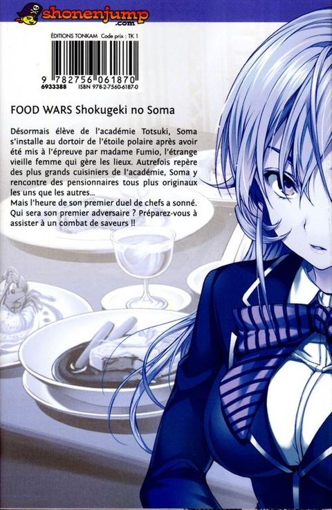 Sôma vis désormais à plein temps à l'école culinaire Tozuki. À peine installé, il fait la rencontre du diabolique gardien des lieux et d'un groupe de pensionnaires tous plus louches les uns que les autres ! Mais pas le temps de s'interroger, l'heure est venue de livrer son premier face à face culinaire. Mais qui sera son premier adversaire ? Préparezvous à assister à un combat plein de saveurs !!!