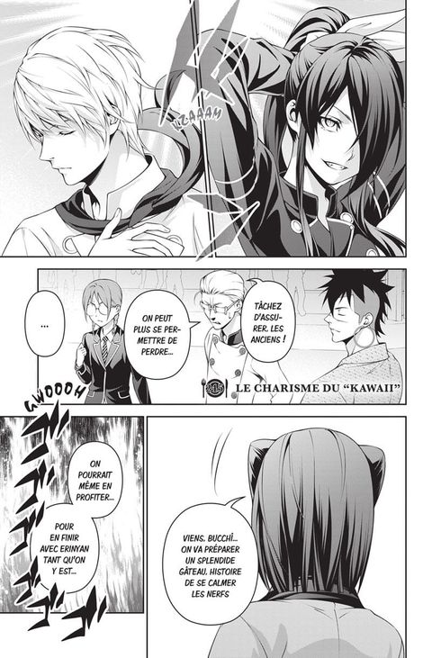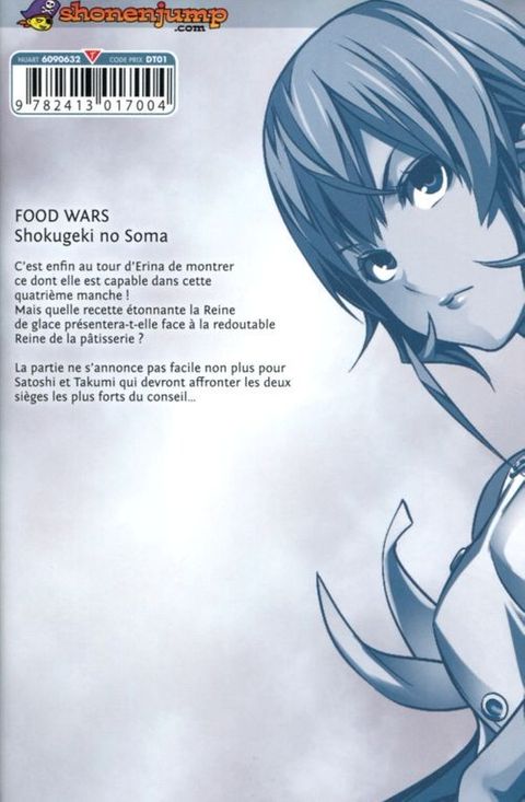 C’est enfin au tour d’Erina de montrer ce dont elle est capable dans cette quatrième manche ! Mais quelle recette étonnante la Reine de glace présentera-t-elle face à la redoutable Reine de la pâtisserie ? La partie ne s’annonce pas facile non plus pour Satoshi et Takumi qui devront affronter les deux sièges les plus forts du conseil...