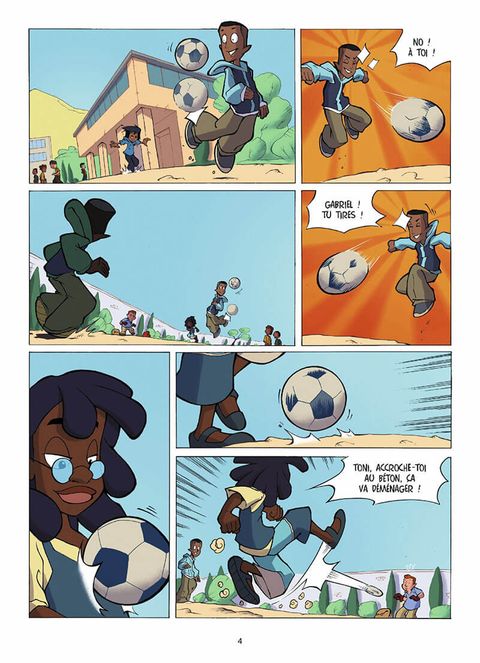 "Pas de terrain de jeu ? Peu importe... Le moindre bout de bitume fera l'affaire. Les règles sont simples : pas de bagarre et pas d'arrêt de jeu jusqu'à la victoire ! Pour le reste, la rue fait loi. L'équipe des bleus : Tag (capitaine), Gabriel (défenseur