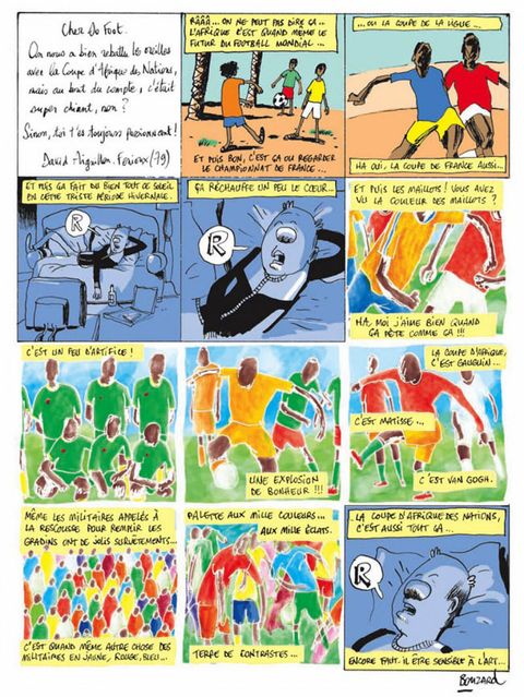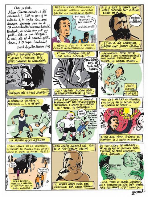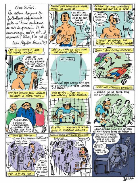 Après les très remarquées Autobiography of me too, Bouzard s'attaque à cette magnifique institution qu'est le Foot. De l'élection de Michel Platini à la tête de l'UEFA à la coiffure des footballeurs italiens en passant par la blessure de Djibril Cissé et la choucroute d'avant match, Bouzard nous régale de quelques tacles bien sentis. Cet album reprend les pages parus dans So Foot et les strips de Libé durant la coupe du Monde ainsi que des inédits. De quoi prouver à la face du monde ébahi que le foot ne rend pas que stupide et violent, il peut aussi rendre drôle. À noter que la magnifique couverture se déclinera en quatre superbes couleurs rappelant à l'amateur éclairé quelques équipes mythiques.