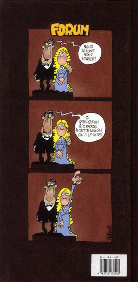 Cet album est une véritable poilade des phrases absurdes qu'on a tous pensées un jour : mais si quelqu'un n'est pas d'accord qu'il le dise ! Paru à l'époque dans le mensuel Fluide Glacial, ces gags en 3 cases étaient signés Binet. Voici ses recommandations de lecture - car, entre nous, faire un résumé de forum c'est pas chose aisée : Chaque strip est divisé en trois parties égales. A, B, et C La première partie est réservée à l'exposition du sujet. Un personnage se présente et en quelques mots, informe le lecteur de son problème. La deuxième partie est ce que l'on pourrait somme toute définir par « comique de répétition ». La phrase étant chaque fois terminée par : « Si quelqu'un n'est pas d'accord, qu'il le dise ». Enfin la troisième partie, et non la moindre est celle consacrée à la chute, au gag en quelque sorte. Et c'est là qu'il faut rire.