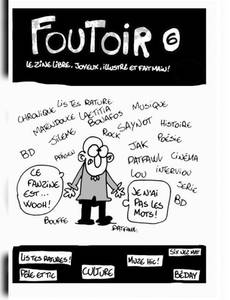 Et nous voilà dans "Foutoir" numéro 6 avec 50 pages de pure bonheur ! Le fanzine fait mains de Peter Patfawl avec des Bandes Dessinées exclusives, des articles et chroniques sur la culture rare et une interview de Christian Rauth ! (Comédien populaire et romancier). Des planches de BD totalement inédites de Saynot, Mantedouce, Jak, Pfägen, Jilème et Peter Patfawl. Des dessins de Lou et Peter Patfawl également. Des textes inédits de Laetitia Bonafos et un tas d'autres surprises ! Découvre tous ce "Foutoir" et voyage entre humour délirant et informations rares pour dormir le soir moins stressé et moins ignorant ! Bonne lecture !