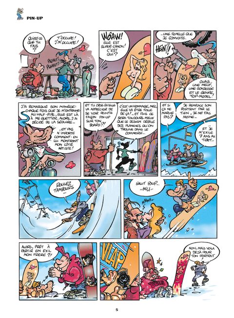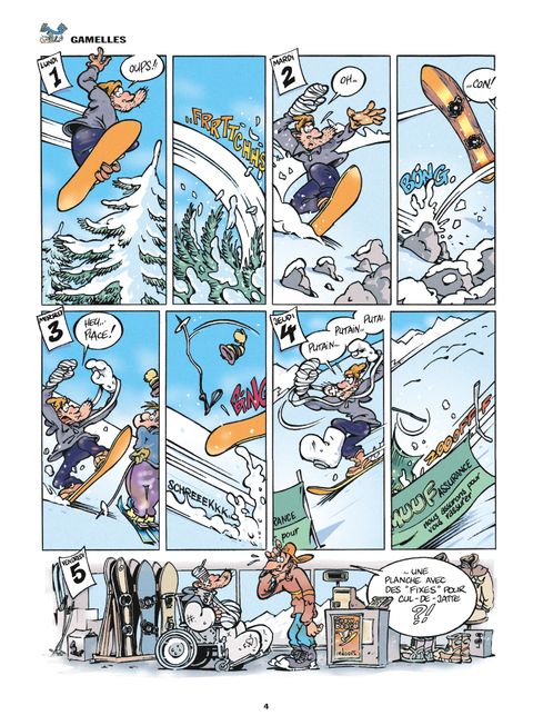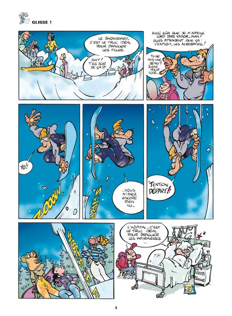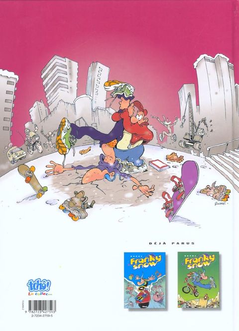 " Qu'importe le risque, pourvu que ça glisse ! " : telle et la devise de Franky Snow ! Fun board, Rollers, Line, Skate et Surf, il expérimente tout ce qui slide et tout ce qui speed ! Sur terre, sur mer et sur neige, Franky n'a qu'un seul but : S'élever dans les airs ! Tout ce qui roule, il l'essaie ! Tout ce qui glisse, il le teste ! Tout ce qui frime, il l'achète ! Car, si le surf est un mode de vie, pour Franky c'est aussi une technique de drague... Or dans cette discipline aussi, c'est le roi de la gamelle ! Mais Franky ne se décourage jamais ! Ce n'est pas un poteau pleine face ni une baffe vexante qui vont arrêter notre champion ! Go, Franky ! Go ! La vérité est au bout du tremplin !
