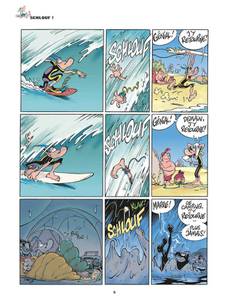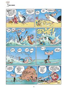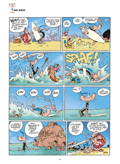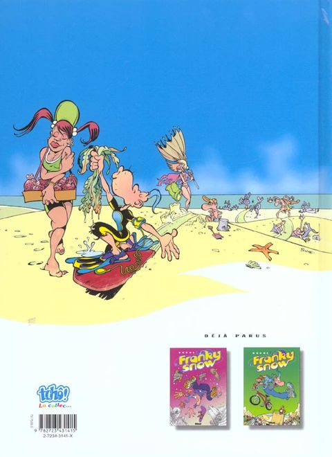 " Qu'importe le risque, pourvu que ça glisse ! " : telle et la devise de Franky Snow ! Fun board, Rollers, Line, Skate et Surf, il expérimente tout ce qui slide et tout ce qui speed ! Sur terre, sur mer et sur neige, Franky n'a qu'un seul but : S'élever dans les airs ! Tout ce qui roule, il l'essaie ! Tout ce qui glisse, il le teste ! Tout ce qui frime, il l'achète ! Car, si le surf est un mode de vie, pour Franky c'est aussi une technique de drague... Or dans cette discipline aussi, c'est le roi de la gamelle ! Mais Franky ne se décourage jamais ! Ce n'est pas un poteau pleine face ni une baffe vexante qui vont arrêter notre champion ! Go, Franky ! Go ! La vérité est au bout du tremplin ! Cette fois, Franky est en vacances à la mer. Il passe son temps à draguer les gonzesses sur la plage et à glisser dans le creux des vagues. Dans les deux cas, notre ami Franky se prend de belles gamelles !