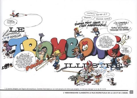 6000 exemplaires numérotés de 1 à 6000 + 300 exemplaires hors commerce numérotés HC 1/300 à HC 300/300. Présente les 26 illustrations de titre réalisées par Franquin pour les 30 numéros publiés du Trombone illustré. Avec un dossier de 6 pages de présentation par Yvan Delporte en introduction