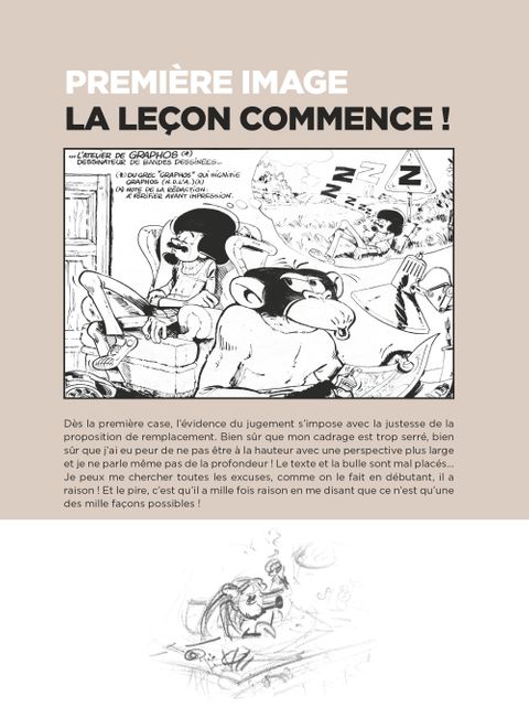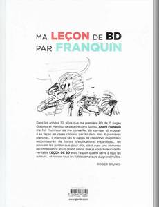 L'un des plus grands auteurs de BD nous donne une leçon. Dans les années 1970, alors que Roger Brunel s'apprête à publier sa première BD de 13 pages, « Graphos et Mandou », dans Spirou, le grand André Franquin lui fait l'honneur de le conseiller, de corriger et de croquer à sa façon les cases choisies par lui de ses premières planches. Il lui envoie alors 19 pages de crayonnés magistraux accompagnés de textes d'explication imparables... Ne pouvant les garder que pour lui, Roger Brunel nous fait le plaisir de partager avec nous cette « leçon de BD » du maître, avec l'espoir qu'elle serve à tous les auteurs... et ravisse tous les amateurs de bande dessinée et les fidèles du Maître.