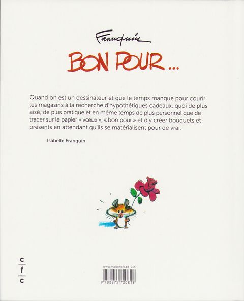 Cet ouvrage offre l’opportunité de découvrir pour la première fois les dessins de Franquin réalisés à l’attention de ses proches. Quand on est un dessinateur de renom pris par la création et le rythme des publications qui se suivent, le temps manque pour courir les magasins à la recherche d’hypothétiques cadeaux et présents pour ses proches. Franquin avait trouvé la solution. À la fois aisée, pratique et ô combien personnelle, la trace sur le papier de « voeux » et autres « bons pour » est devenue pratique courante dans la famille Franquin. Bouquets croqués, présents dessinés étaient offerts dans l’attente que les cadeaux se matérialisent plus tard… Les dessins que l’on retrouve n’ont jamais eu pour vocation d’être publiés un jour.Conçus et imaginés pour les anniversaires ou les fêtes comme la Saint Valentin, ils ont cette saveur des dessins rares que l’on découvre avec curiosité. C’est un privilège que de pouvoir admirer ces dessins inédits couvrant une période allant des années 1950 aux années 1990. On appréciera le travail du dessinateur multipliant les techniques, passant du pinceau à la plume, du Rotring au crayon ou encore utilisant un simple stylo. On sera aussi frappés par l’usage de la couleur et l’évolution du style de Franquin liée aux époques qu’il traverse. Modestement inaugurés par deux premiers « bons pour » destinés à ses beaux-parents, Franquin prendra vite goût à l’exercice en sophistiquant ses petits dessins devenant des petits bijoux de graphisme et d’inventivité. Ils vont aussi exprimer la profonde affection et la bienveillante générosité de l’auteur pour ses proches.