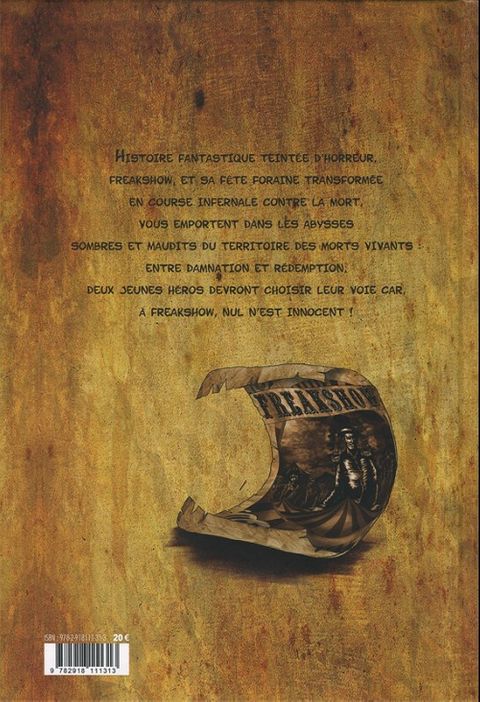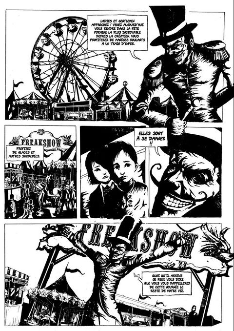 Tout commence lorsque deux enfants se retrouvent devant les portes d’une fête foraine. Ils se promènent découvrant les merveilles qui les entourent, et rencontrent des personnages hauts en couleur. Mais, au fur et à mesure de leurs déambulations, cette ambiance ne semble plus être aussi festive, la fête foraine prend des aspects inquiétants et se transforme peu à peu en cauchemar à l’arrivée de zombies qui l’envahissent à grand bruit à la nuit tombée. On assiste, impuissants, aux tentatives deux enfants de quitter ce lieu maudit sur terre. On explore les méandres de cette fête foraine infernale à la recherche d’une parcelle d’humanité. Rejoints par une Communauté composée de toutes sortes de monstres de foire, Les freaks et les enfants tentent à tout prix de survivre à cette invasion de morts vivants en le payant parfois très cher : entre damnation et rédemption, ils devront choisir leur voie car à Freakshow, nul n’est innocent !