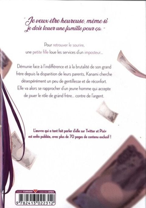 Dans ce Tome 1 de Frère à louer, Kanami qui se sent seul décide de faire appel a un frère à louer. Ce Tome met les basses de la solitudes et du besoin de réconfort. C'est à la fois touchant et agréable a lire. Cette enfant qui a besoin (...) Voir le commentaire