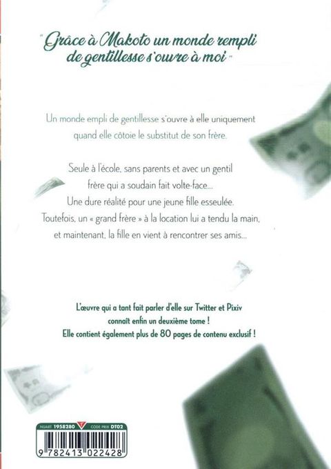 Dans ce Tome 2 de Frère à louer, il est mit en avant le passé de Makoto. Et les 1er pas de Kanami a s'ouvrir aux autres enfants de son âge. Le récit reste toujours aussi poignant, profond, émouvant, bouleversant et si touchant. Chacun apporte a l'autre ce qu'ils ont (...) Voir le commentaire
